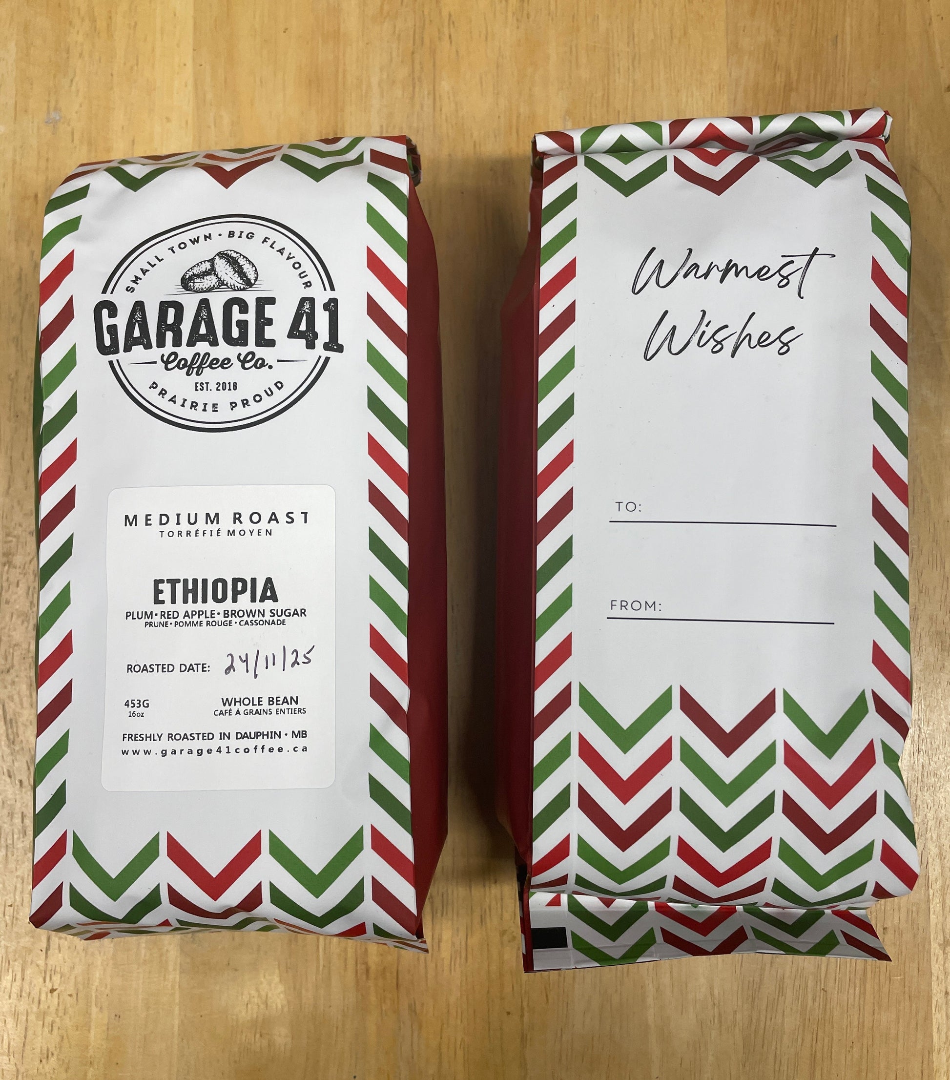 This limited-edition Christmas roast is a medium roast from Ethiopia, featuring notes of plum, red apple, walnut, brown sugar, and cocoa.